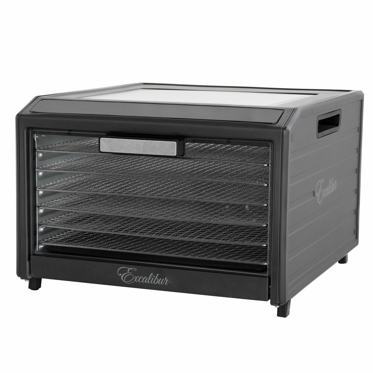 The new Excalibur 6 Tray Performance Series Food Dehydrator has an adjustable thermostat, digital LED control with a progress bar and smooth hideaway drawbridge door,